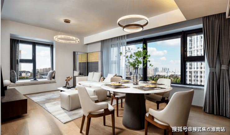 约6.5m超宽横厅搭配独特的转角大飘窗设计,让空间更为通透舒心,为居家时光增加更多明媚的阳光与心动的风景。