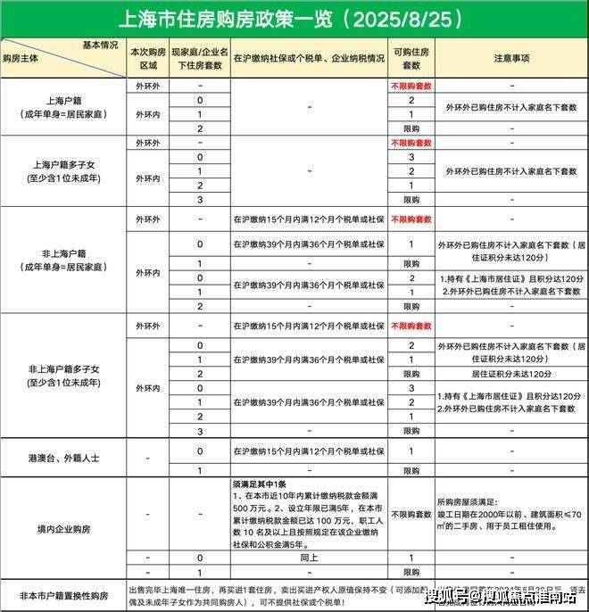 结合8月25日发布的新政,上海链家已将限购、税费、公积金贷款、商业贷款等关键政策,梳理成清晰易懂的图表,助您快速掌握最新购房要点。