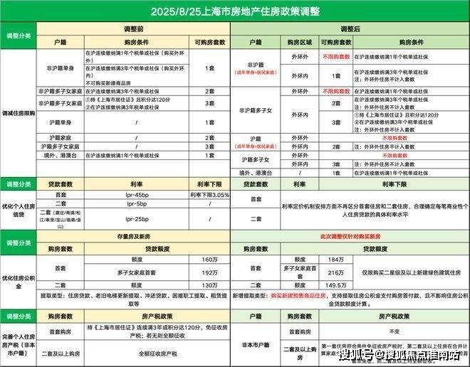 为更好满足居民刚性住房需求和多样化改善性住房需求,促进房地产市场平稳健康发展,8月25日,市住房城乡建设管理委、市房屋管理局、市财政局、市税务局、人民银行上海市分行、市公积金管理中心等六部门联合印发《关于优化调整本市房地产政策措施的通知》(以下简称《通知》),包括调减住房限购、优化住房公积金、优化个人住房信贷以及完善个人住房房产税等政策。《通知》自2025年8月26日起施行。