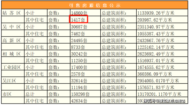 新房库存方面,据我们统计显示,截至目前,苏州新房库存一直维持在4万套以上,而姑苏区的新房库存却不到1500套,占比微乎其微,仅占3.3%。