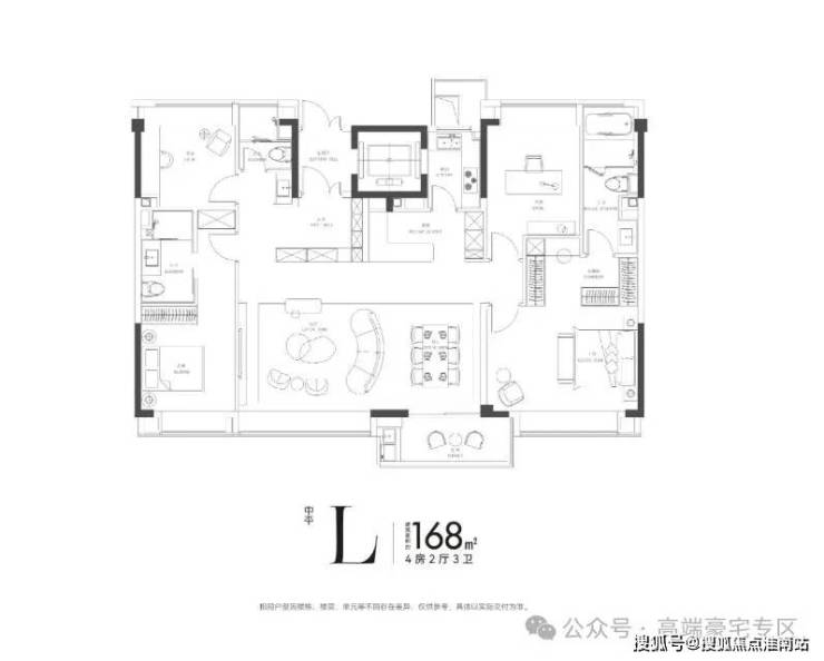 大师臻造,同频世界奢宅美学理念。高层/小高层立面采用部分天青色铝板,叠墅立面采用天青色釉面陶板,融合大面玻璃开窗(LOW-E玻璃),彰显澄澈简约,又时尚前卫的摩登气质。