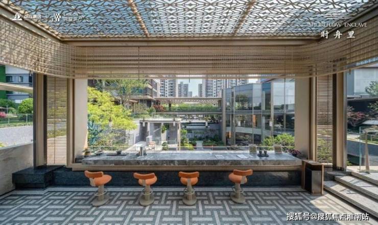 其中下沉水院作为关键归家场景之一,以水为引,叠瀑飞流,对景廊架,还有风景连廊,搭配波光粼粼的镜面水景和绿植点缀,随手一拍,满满松弛感。