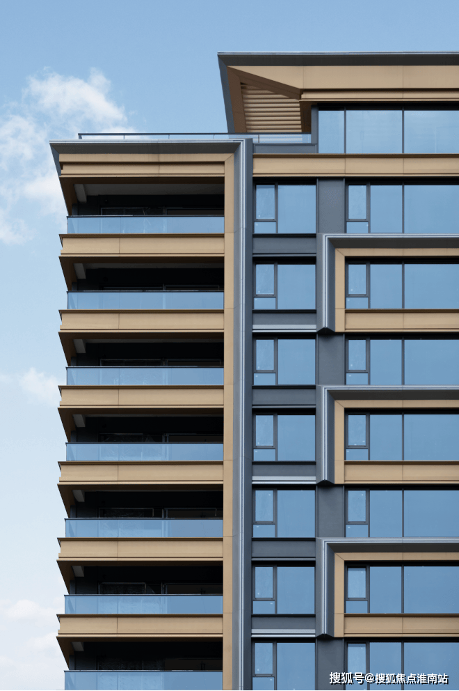 项目外立面由享誉国际的日清设计团队精心打造,大面积的玻璃幕墙与铝板、石材巧妙融合,斜切的线条与香槟色的金属点缀其间,构成了江河汇版图上极为靓丽的天际线。