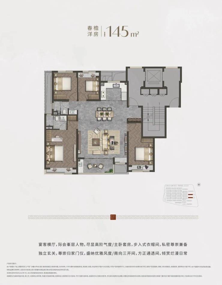 建面约145㎡洋房,则以“宽境”为核心,让阳光与清风成为生活的常客。