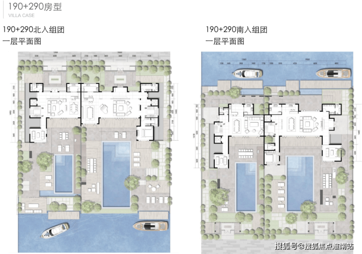 北入户的190+290房型,一层朝南直面庭院和泳池,如果配上整扇的落地玻璃移门......