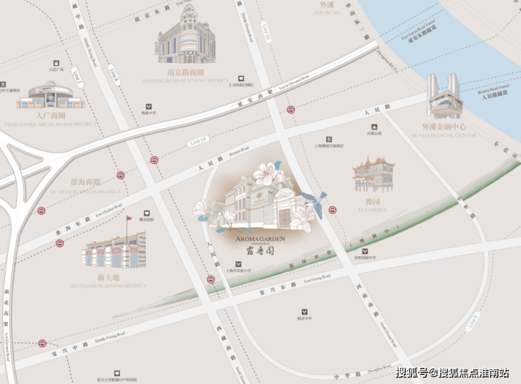 作为上海的绝对市心露香园直线距离人民广场、淮海路、外滩、豫园等上海市地标性区域均不超过1.5公里,距离陆家嘴直线约2公里。