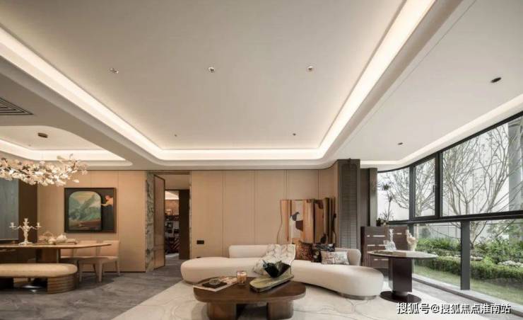 不仅是金钱上的奢侈,更是时间广度的奢侈。比如,整个下沉式庭院材料选用土耳其进口老虎玉,由匠人耗时60天手工打磨定制,可见海上·清和玺对业主归家仪式感设计的用心与苛求。海派光厅之外的归家迎宾树木更是由设计师辗转多个城市才寻到的、树龄超60年的福木“紫薇”。