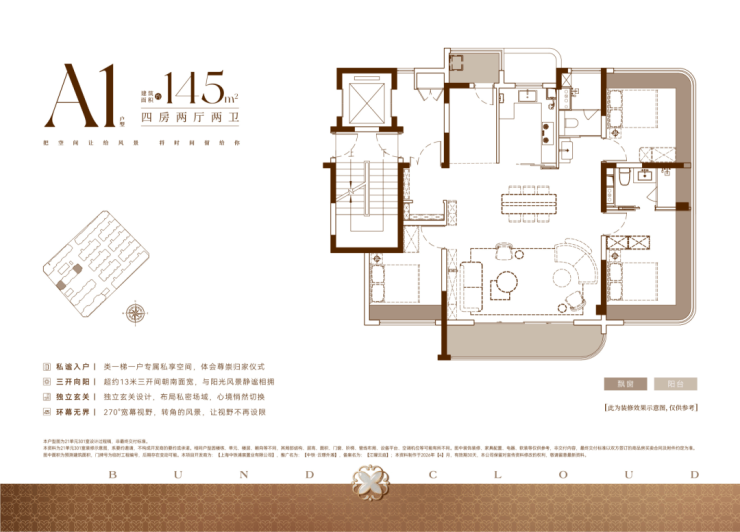 顶配精装 + 会所4000 元 /㎡+ 装标(三大件 + 国际一线),配1000㎡下沉会所(恒温泳池)