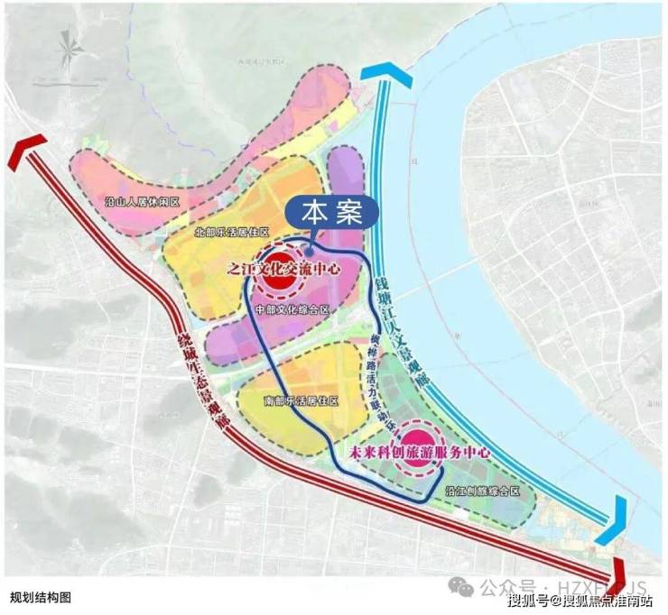 2023年7月初《之江度假区单元详细规划(草案)》公布,未来之江板块将沿江形成“两心、两廊、一环、五区”的规划结构。