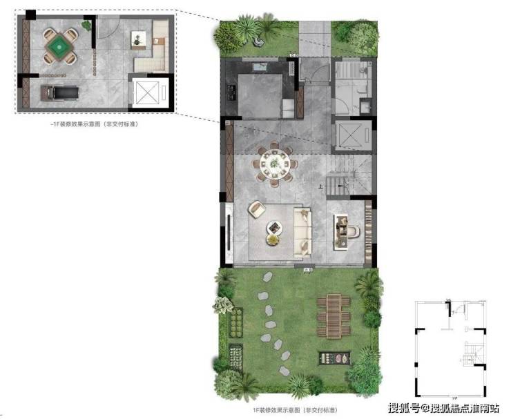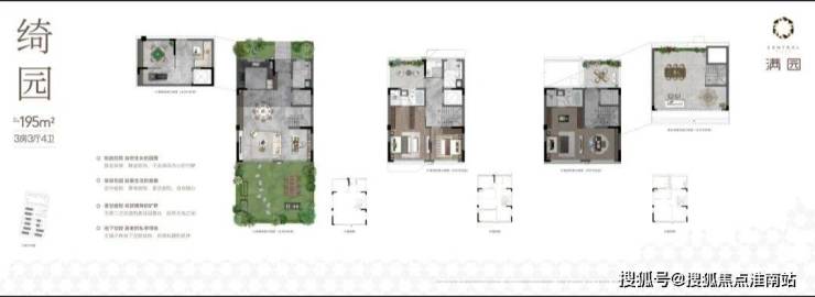 约195㎡联排,也带来了前庭后院、层层花园、无需二次改造的真顶层露台等超高附加值(约55㎡庭院+89-98㎡拓展空间)。