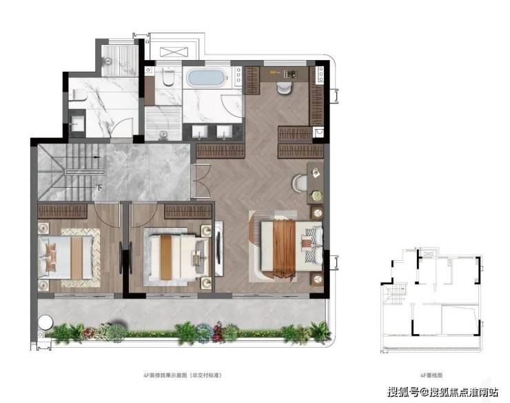 三楼是超大行政套房,并带了了一大露台,同时还赠送一个无需二次改造的顶层露台。