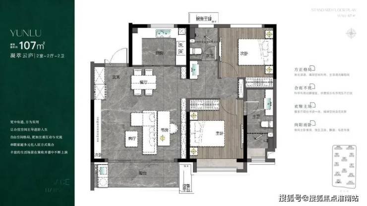 起步的约107㎡户型,放弃了主流的三房格局,而选择了大两房,坚守纯粹改善基因!