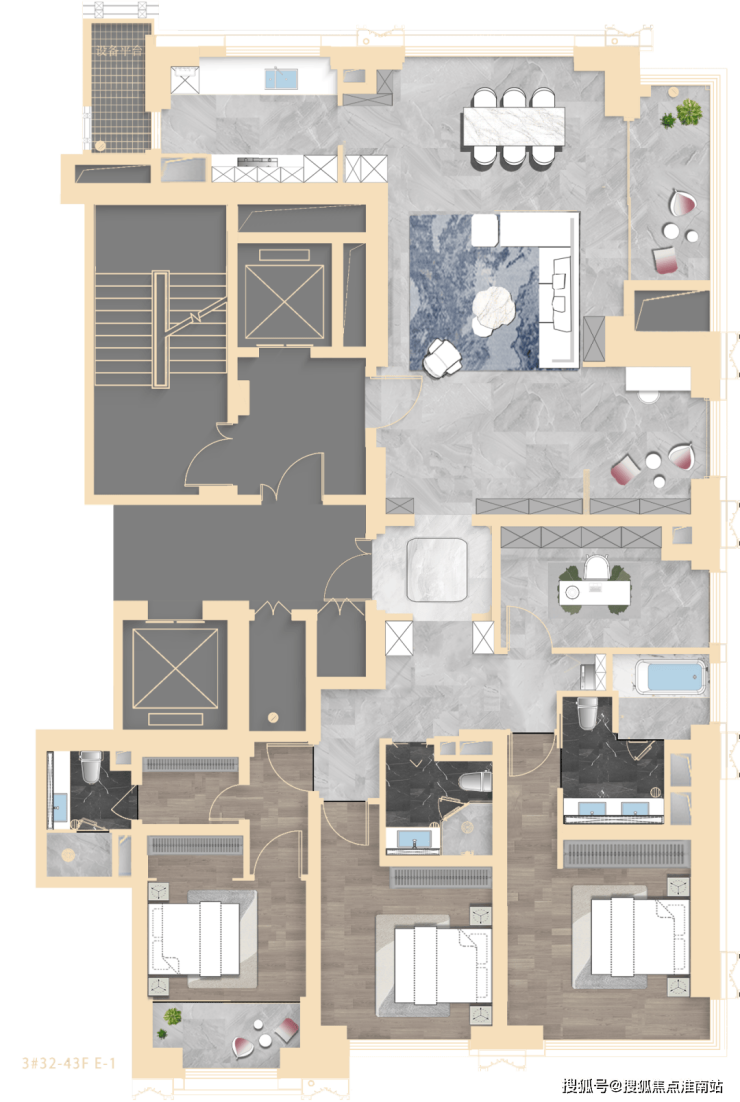 建面约193、237㎡为类一梯一户设计,拥独立门厅;建面约303㎡ 标配2梯1户、私享梯厅,纯粹的大平层圈层!
