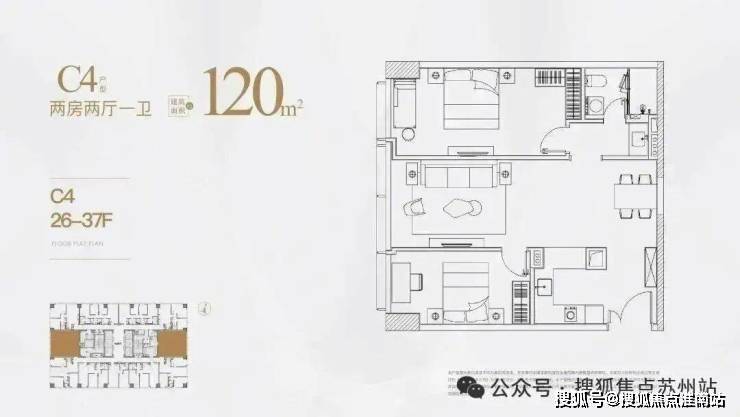 建面约105-120㎡,都是两房户型👇