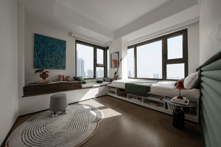 全屋飘窗设计,空间利用率和得房率进一步提升;北次卧和主卧相邻,动静分离,访客动线合理,不会影响家人休息和空间私密性,影响与客人的交流互动。