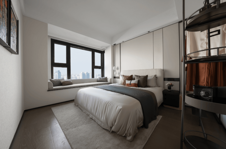 朗云在主卧采用270°环幕景观飘窗,打开观景的极致视野。尺度真是大到惊人的程度。