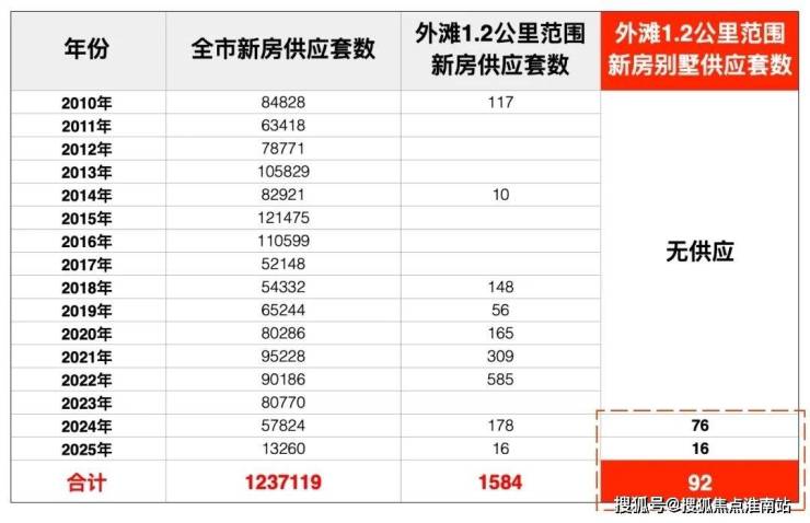 据网上房地产数据统计,2010年至今全上海合计供应新房123.7万套,聚焦外滩1.2公里范围内大多数年份都是轮空的,10多年累加起来仅仅1584套,稀缺性已然爆表!