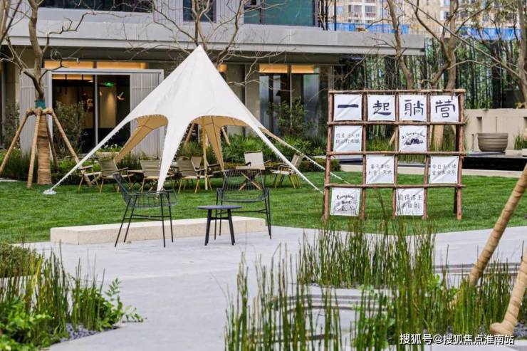 阳光草坪,搭个天幕就能露营;心爱的“毛孩子”也有了玩耍的去处;边上还有小朋友的戏水池,挽起裤腿就能踩水玩。