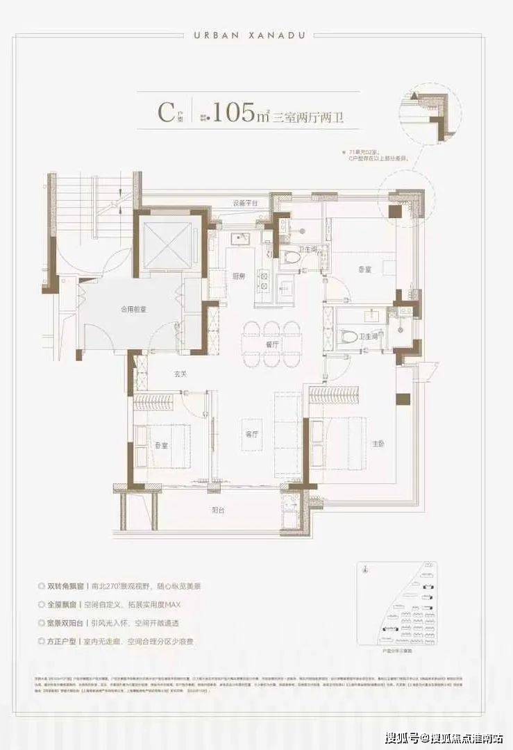 约270°南北双转角玻璃飘窗更是成为了一道靓丽风景线,超高的颜值,重塑大吴淞城市天际线。