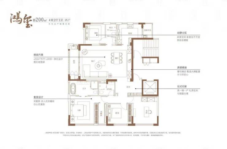 主力在售户型面积:建面约200㎡四房两厅三卫(唯一在售户型,无小户型)