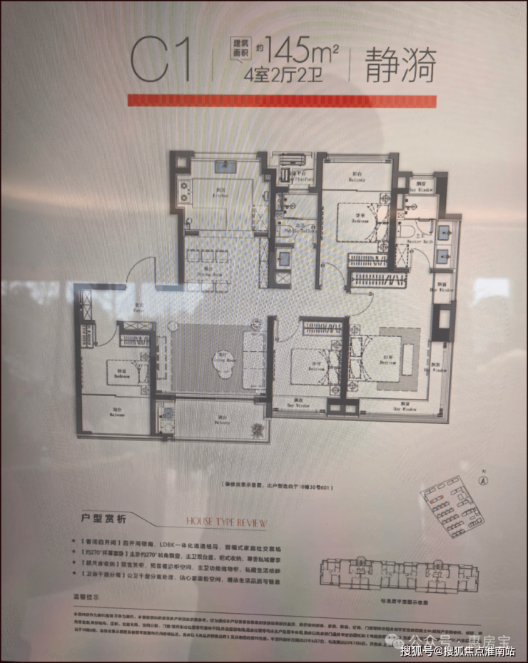 建面约145㎡4房2厅2卫,全两梯两户无连廊,共计约98套;