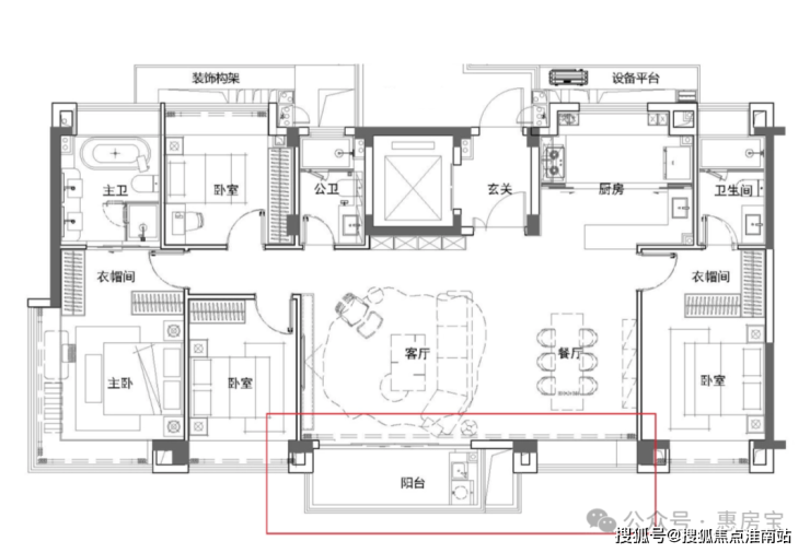 下图为边套户型过程稿,红框线范围内可能会对另外一个次卧的飘窗位置进行优化,优化为阳台,也就是南白两个次卧均带阳台!