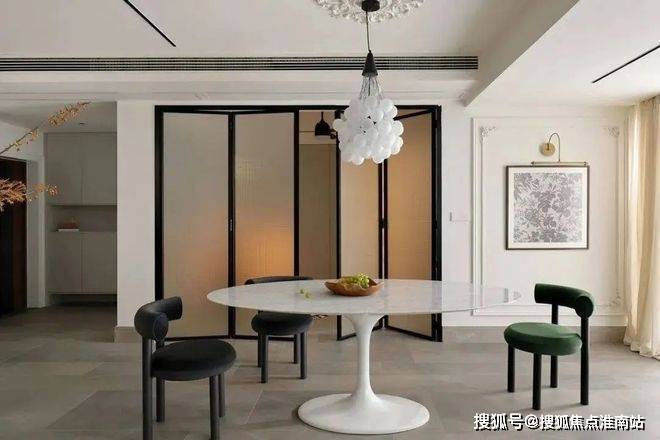 餐厅与多功能房之间采用长虹折叠玻璃门隔断,在艺术与生活之间找到了完美的平衡点。