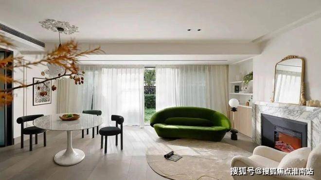 暖白色现代法式客厅,少许经典的法式雕花结合大白墙,打造一个现代法式的空间基调。