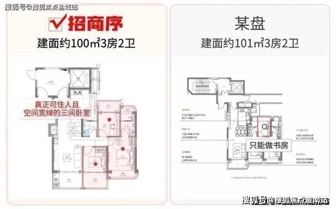 这是百平米3房那么多年一直无法解决的通病,但招商序的百平米3房却截然不同,TA凭借着3阳台的设计,给到客户一个真正的三房户型: