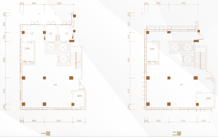 B户型,产权面积856㎡,实际使用面积约1200㎡,地上三层,地下两层,4.5m标准层高,一栋一本产证。