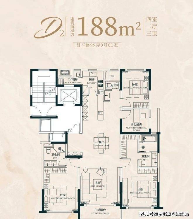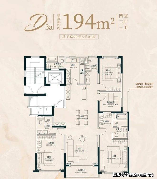 昌平云岸售楼处电话:400-9659-259该户型的亮点是双套房的配置、昌平云岸售楼处电话:400-9659-259