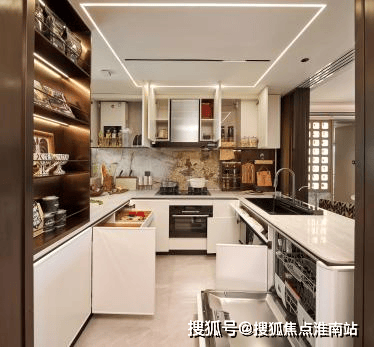 譬如说部分柜体更安全的圆角处理、高柜顶部一窥到底的镜面反光膜、大大提高空间利用的薄抽,不用弯腰一踢即开的踢脚抽设计,便利性大大增加;