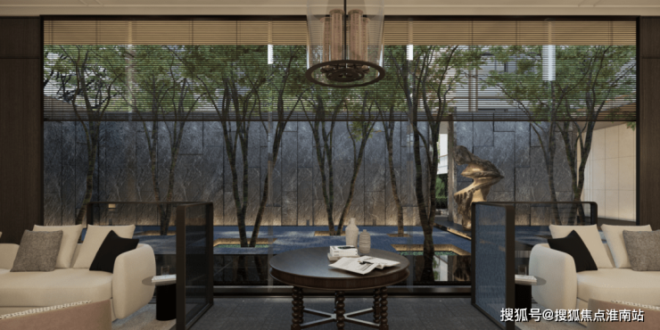 叠瀑、涌泉、跌水、静水,还原姑苏园景之中林间水榭的精致画卷,林下归家、伴水而栖,贝金米黄景墙中,层层跌水灵动细长,在都市之中生长出一座自然岛屿。