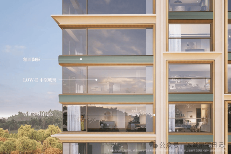 实现上海转角连续约 12米无柱全景舱户型,部分户型 270°转角飘窗以及全景舱户型的落地,贯彻「公园观礼台」主线,将景观充分揽入室内。