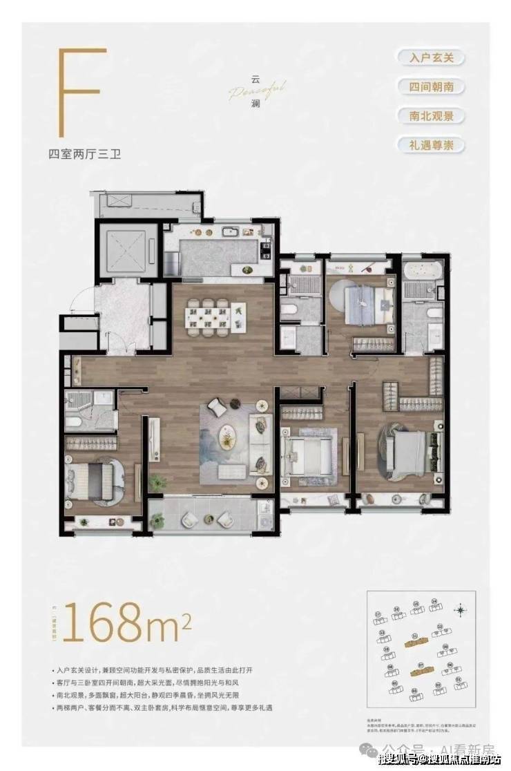 F户型:建面约168㎡4房2厅3卫▼陆家嘴.锦绣云澜售楼处电话:400-8567-334✔✔