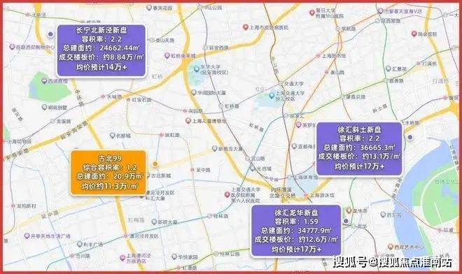 而与古北更近的,是长宁北新泾地块,成交溢价率24.4%,未来有望卖14万,与古北99的直线距离,约4km左右,而这4km,或许就是3万+的单价差!