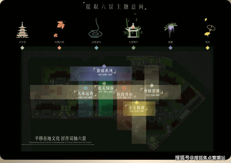 项目园林对轴线的运用同样出彩,堪称神来之笔的“双轴六境”,由“礼序归家轴+景观漫步轴”纵横交织,融在地文化,以“非遗”竹编形制,铺陈园林步道,同步淬取“州桥壁落”、“紫藤熏风”、“天水远香”等嘉定古今6景,提炼细节元素及专属色系,营造主题园林空间。