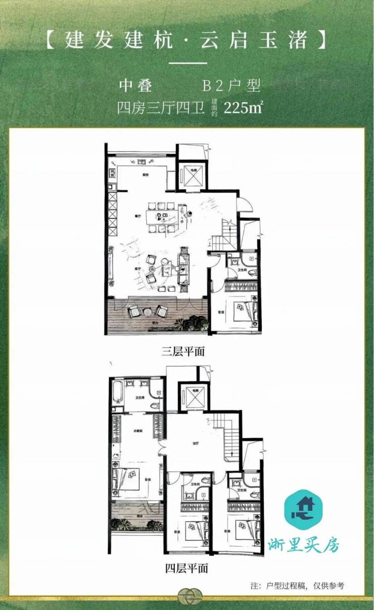 下叠:约 210-225㎡(4-5 房 2 厅 4 卫),配南北双庭院 + 6.25 米挑高地下室