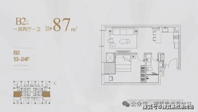 建面约80-88㎡,位于13-24F,客餐厅厨房都有功能更齐全