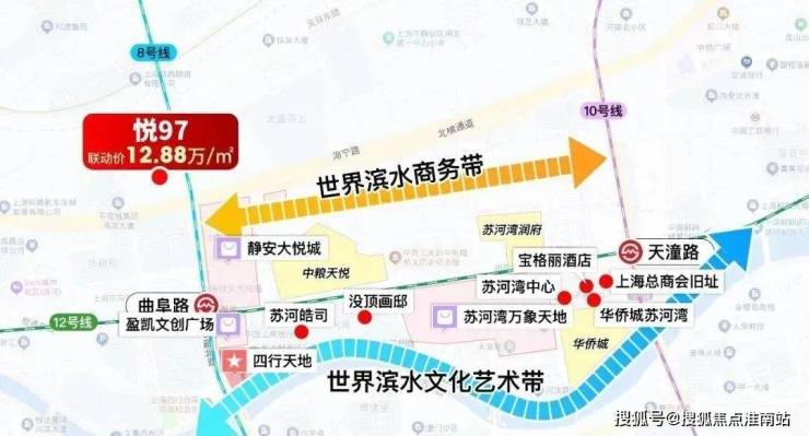回过来看悦97,它是真正的苏河湾核心位置,真正揽尽了苏河湾的精华!