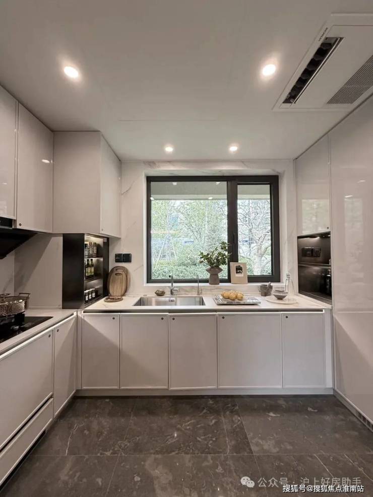 比如,厨房配了珍珠白吊柜、三组抽屉式拉篮合理搭配,调料架收纳、大容量踢脚抽、清洁用品收纳区,米面粮油、碗碟刀叉都可完美隐身。