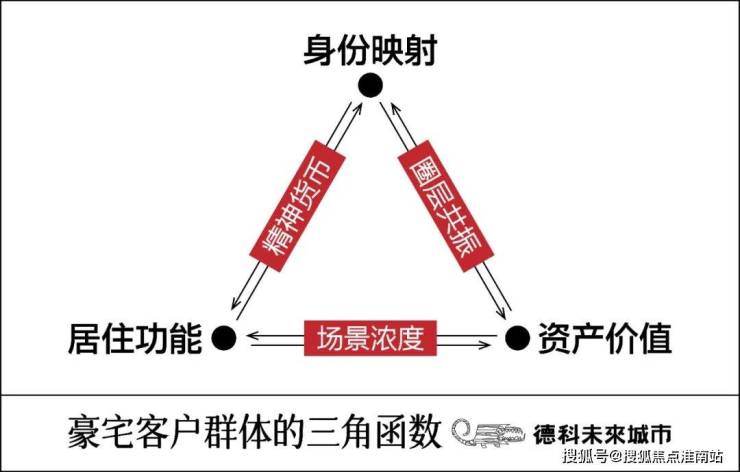现在我们来稍微总结一下,触发豪宅客户群体购房的心理机制。实际上,「身份映射」「居住功能」与「资产价值」这三项诉求,是紧密循环的——「身份映射」所依赖的精神货币,主要 来源于「居住功能」的场景浓度;「身份映射」越强大,就越能凝聚成一个纯粹的圈层,进而又会让「资产价值」更稳固。