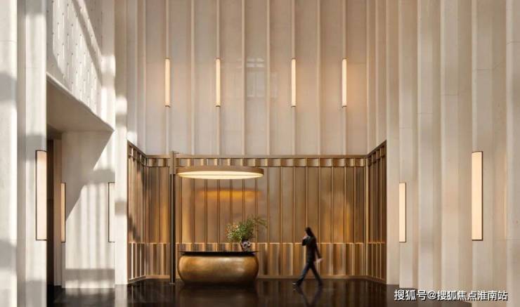 ▲上图:大堂接待台;中图:三层挑空的艺术大堂正向视角;下图:反向视角;中興傲舍实景图,上海
