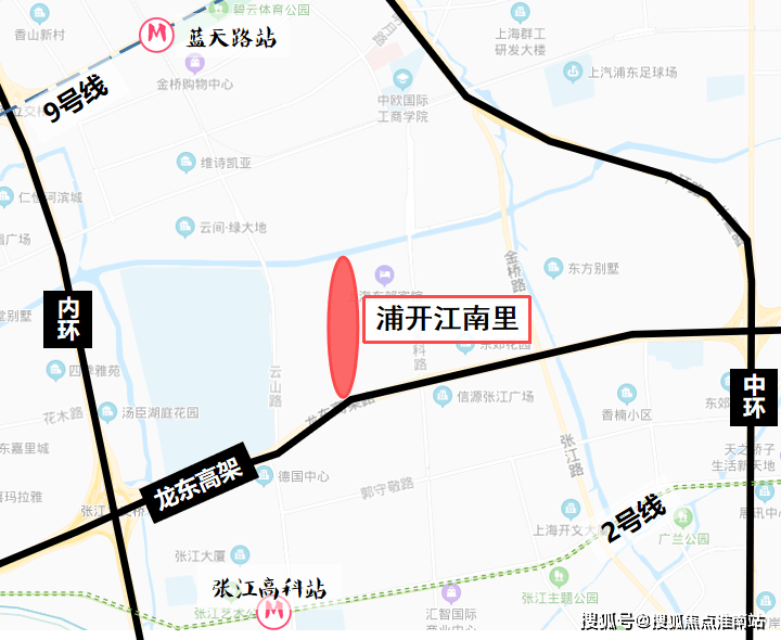 🚇项目交通:浦开江南里紧邻龙东高架,临近内环和中环,直线距离9号线蓝天路站约2公里、2号线张江高科站约1.3公里,出行便利。
