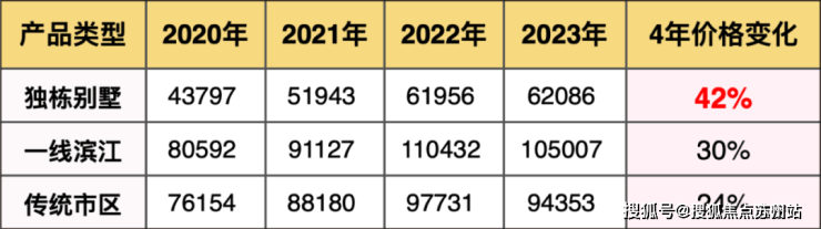 更重要的是,这4年独栋别墅的二手房成交价格变化程度,甚至超越了一线滨江跟传统市区。