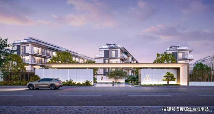 现代立面 四水归堂寓意美好!以斜切45°香槟色木纹铝板与银色金属线条搭配透明玻璃,营造现代时尚的立面风格;宽近32m恢宏大门,以威仪姿态礼遇归家享受;并遵循“四水归堂”的造园理念,臻筑美学园林大境,精巧布局一大中心花园、一条景观轴线、多重院落;更以三重归家礼序,营造酒店式归家场景,予生活尊崇仪式感。