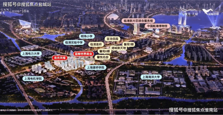 【龙光·天曜】就位于商住教示范区的门户核心位置,从上海市区自驾来临港,经S2沪芦高速(已全程免费)下闸道进入申港大道,首先映入眼帘的就会是滴水湖首个天际坐标——龙光蓝鲸世界百米酒店。这个酒店也是【龙光天曜】建面约50万方综合住区的商业配套部分。