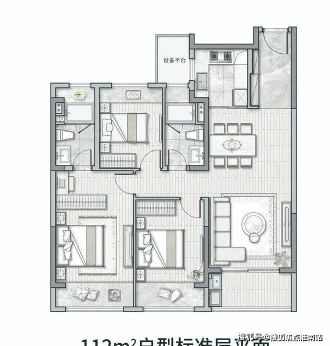 2. 三房两厅两卫,动静分区,互不干扰