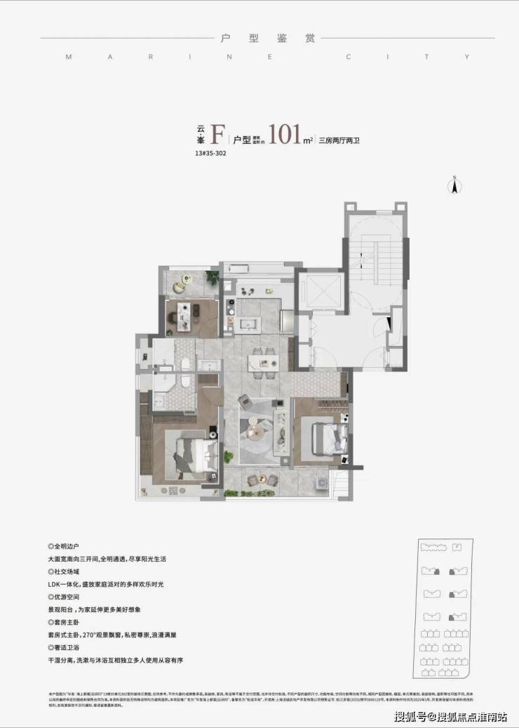 为不同家庭定制生长型空间,勾勒出不同的生活场景,建面约101㎡ 进阶三房,更懂你对生活的向往。