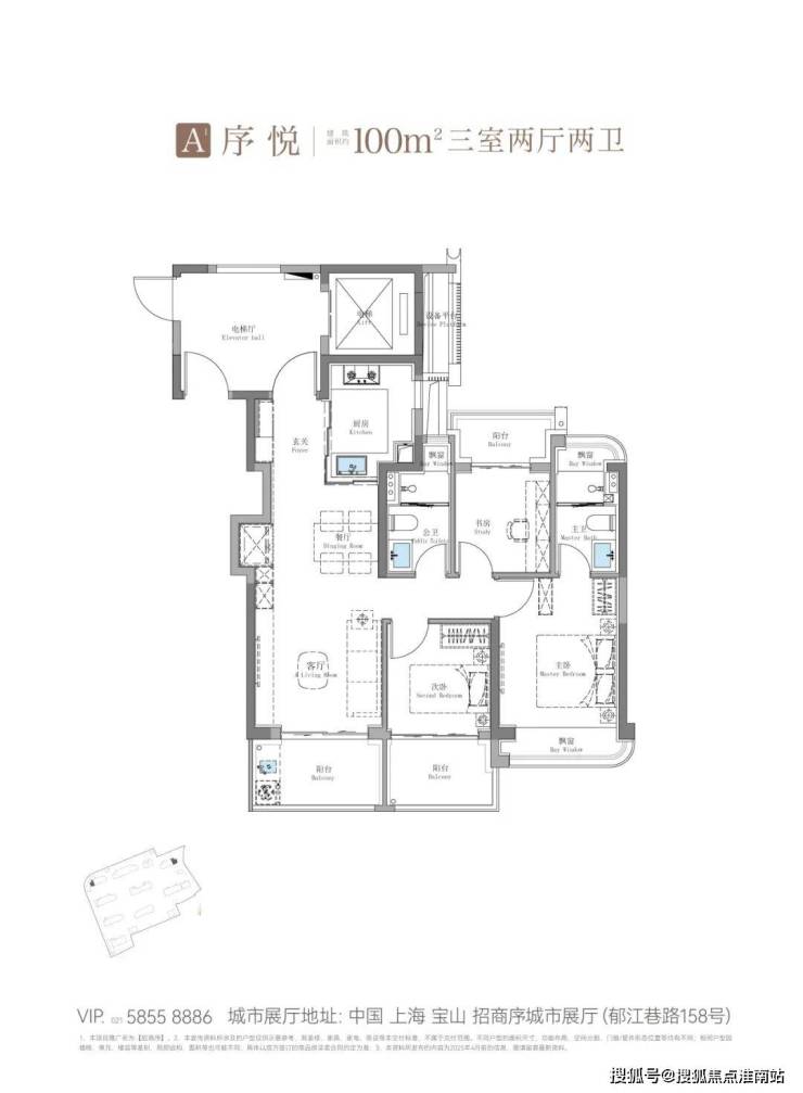 不同于市面上同质化的百平三房设计,招商序以两个建面约100㎡户型——A3中间户与A1边户,彻底颠覆了市场对百平户型的认知。